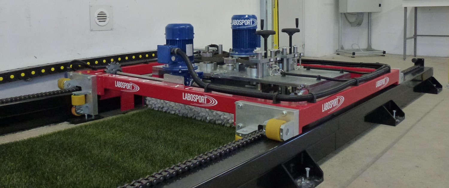 DELTA儀器公司根據FIFA和CEN的標準描述,檢測人造草坪的耐磨度, 德爾塔儀器研發了草皮磨損測試儀來進行模擬機械磨損測試.這種草皮磨損測試儀能夠進行兩種模擬測試:隨機加力磨損測試和橫向運動磨損測試,這些相關標準指定的磨損測試方式可以避免產生測試實驗的規律性。通過Lisport20耐磨損測試設備上的釘輥在人造草坪樣品上來回碾壓,模擬正常使用時,運動員穿著帶釘運動鞋在草坪上運動,達到一定的時間周期后,檢驗、評價草坪的磨損情況。耐磨性能良好的人造草坪更耐用,使用壽命更長久。本試驗機結合國外先進同類設備優點并自主創新,采用橫縱兩維方向上的兩個獨立運動系統更合理地模擬人造草坪實際使用時的磨損情況,并且結構緊湊,噪音小,操作簡單,便捷美觀。