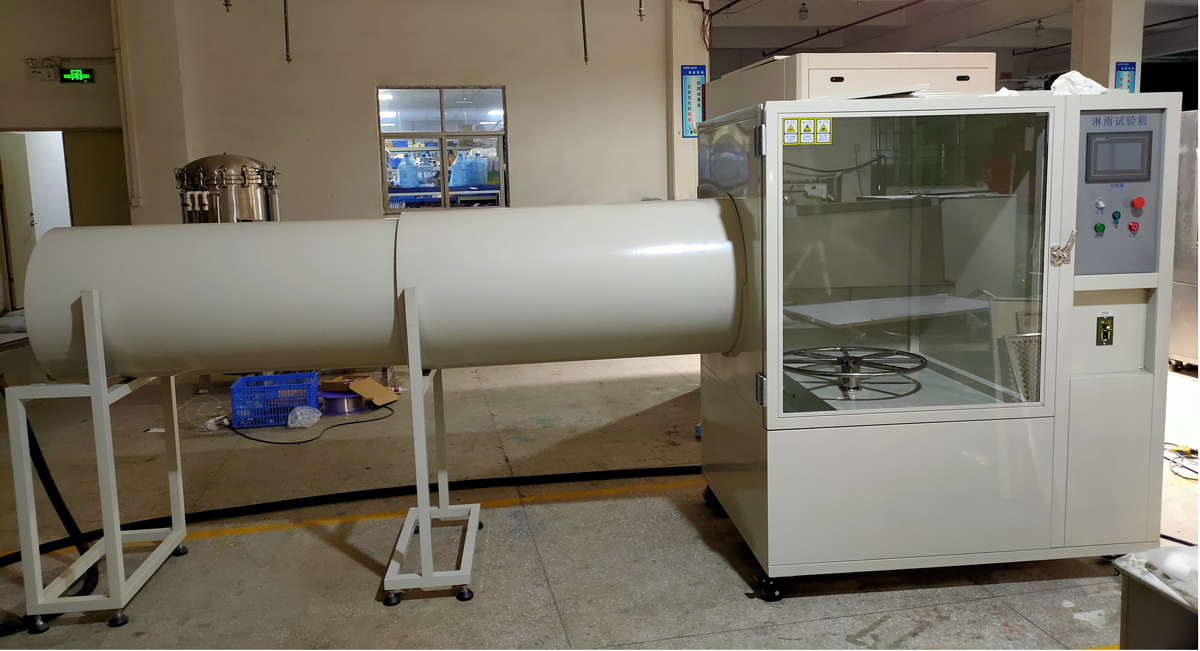 本設備采用橫向沖水、全密封式設計結構,適用于研發型、寫字樓等場地安裝,幫助客戶解決了敞開式淋雨過程中試驗用水噴淋和收集不便帶來的麻煩。設備底部設置一水箱在通過右側控制箱內部的不銹鋼水泵抽水并加壓后再送到側面噴水管裝置的噴頭處,噴嘴恒向噴水到轉盤上面的樣品上,再散落到水箱內部,從而形成水循環系統。水泵出口設計流量計、壓力表、電子閥等控制元件。