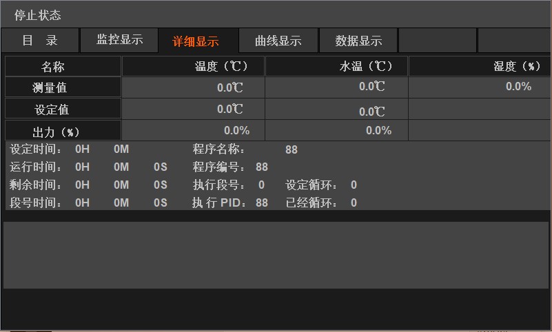 | 1)顯示方式:LCD液晶顯示,觸摸控制。中/英文界面可選。 2)采樣時(shí)間:1次/S; 3)圖形顯示:完整顯示設(shè)定及程序曲線。 4) 溫/濕度PV值再傳輸:該儀表具有兩路4~20mA模擬量輸出,同步傳輸溫度和濕度的顯示值。具有多種斷電恢復(fù)模式。 5)控制模式:定值控制、過(guò)程控制。 6)設(shè)備具有年、月、日及時(shí)間顯示,設(shè)備運(yùn)行時(shí)間、程序段運(yùn)行時(shí)間顯示。 | |