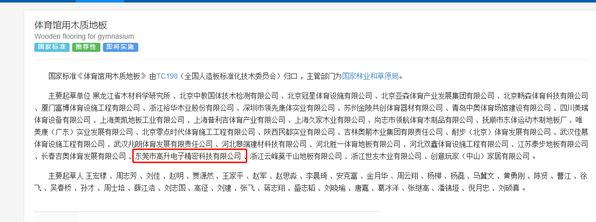 我司成為GB/T 20239-2023《體育館用木質(zhì)地板》起草單位之一