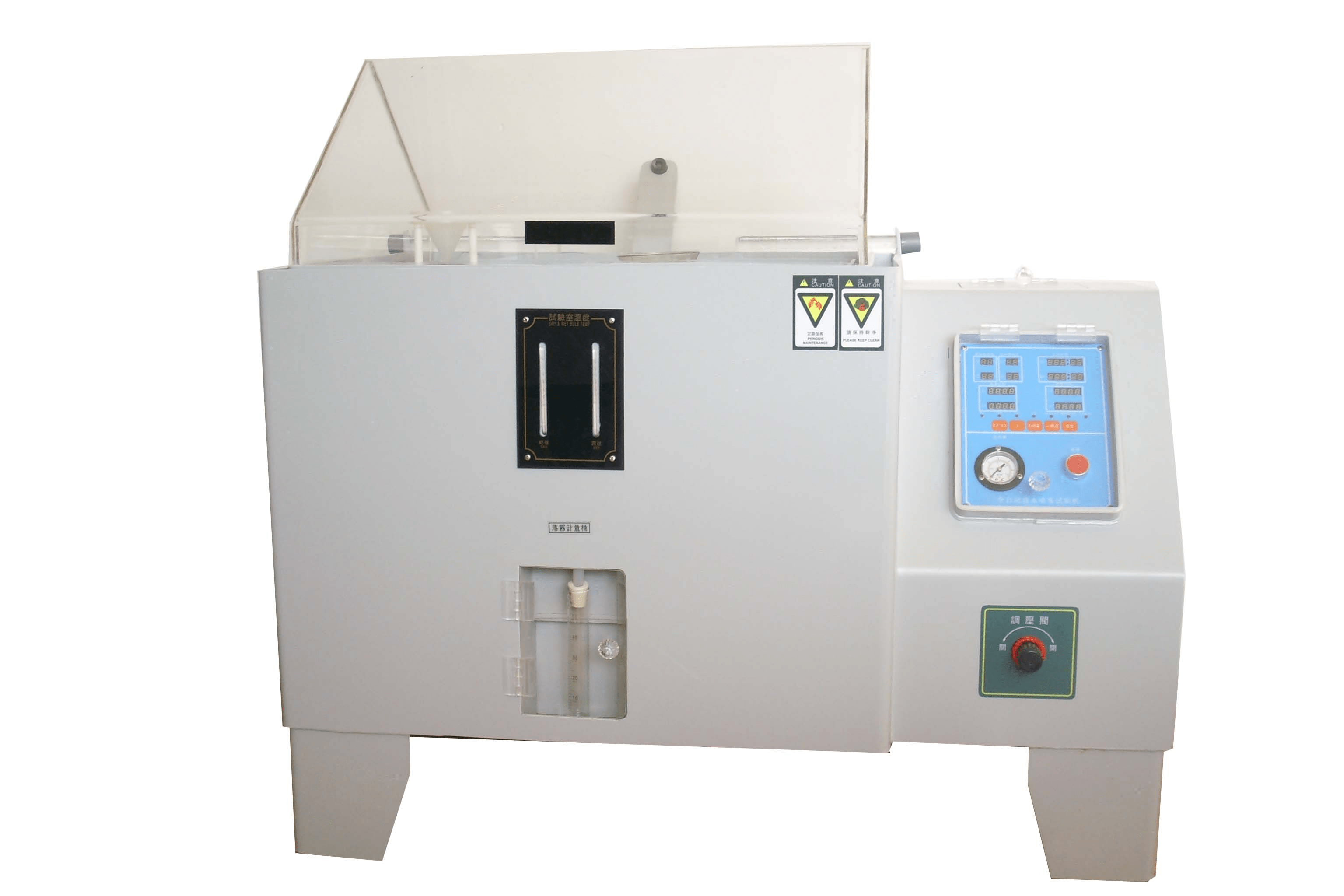 2.箱蓋為全透明進(jìn)口耐沖擊板材制造,便于試驗(yàn)時(shí)觀測試驗(yàn)樣品受試狀況.箱蓋與箱體采用水密封,從而防止鹽霧外泄。