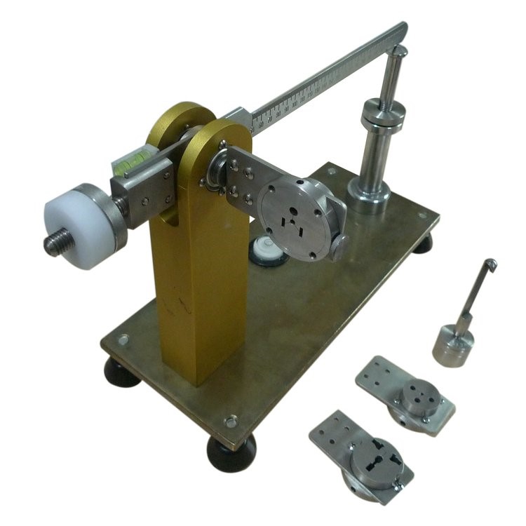 9 | 插頭力矩試驗裝置 (GS-LJ109) | 符合GB/T2099.1-2021標準第14.23.3章節試驗要求、GB4706第22.3條等標準要求,萬能插座(適合GB、BS插頭使用)、 UL插座 | 設備概述:符合GB/T2099.1-2021標準第14.23.3章節試驗要求、GB4706第22.3條、GB8898-2001第15.4.1條及圖11、IEC60065圖11等標準要求。 設備用途: 用于檢測帶有插銷的直插式設備在正常使用時對插座產生的機械應力是否在規定范圍之內,增加配置也可作為螺口式燈座的扭力試驗設備。 主要技術參數: 1、接觸面與軸心面距離:8mm; 2、力臂:0-200mm; 3、砝碼2.5N及1N 1個,可實現0.25N力矩及其他力矩; 儀器配置: 標準插座按照GB/T1002-2021圖2和圖4尺寸制作 |