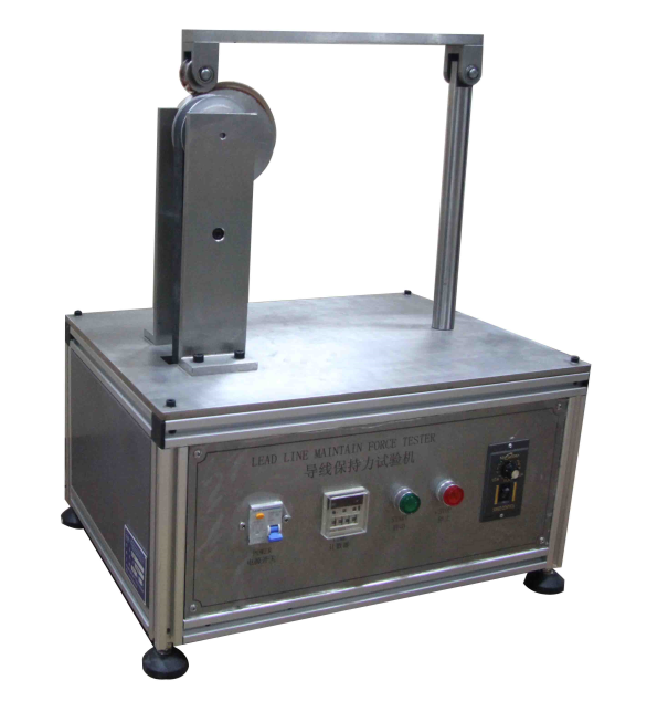 18 | 電源線拉力扭轉試驗機 (GS-LN209) | 符合GB/T2099.1-2021標準中第23章節“軟纜及其連接”試驗要求 | 設備概述: 本試驗機符合GB/T2099.1-2021標準中第23章節“軟纜及其連接”試驗要求、GB4706.1-2005《家用和類似用途電器的安全第1部分通用要求》第25.15試驗要求;用于對帶有電源軟線的器具,以及打算用柔性軟線永久連接到固定布線的器具等家用電器產品、醫療器械、燈具等電源線在接線端處進行拉力和扭矩兩項試驗,檢查夾緊裝置是否牢固。 試樣范圍:家用電器產品、醫療器械、燈具、插頭插座 結構及功能:設備采用Z字結構,可用來測試電冰箱、洗衣機等大型家電電源線夾緊端子的牢固程度。試驗方法為在導線試樣距固定裝置位置20mm處做一標記,然后以1次/秒速率平緩的施加拉力25次,然后在靠近器具位置施加一扭矩,持續1分鐘。試驗過后,導線標記位位移不超過2mm。 主要技術參數: 1、工作電源:AC220V 50HZ; 2、拉力砝碼:20N三個、30N兩個(可實現30N、60N、80N、100N 的拉力); 3、扭力砝碼:5N、12.5N、17.5N各一個,扭力臂20mm(可實現0.1Nm、0.25Nm、0.35Nm的扭矩); 4、受拉次數:0~999999可預置,默認25次; 5、受拉頻率:1次/秒; 6、扭矩時間:0.01S~99小時59分鐘59秒。 7、夾具:拉力夾具與扭力夾具組合,中間通過軸承配合,減小扭力試驗時摩擦; 8、設備采用電機凸輪頂桿機構,Z字型連接,使夾具能夾持電源線在底面150mm以上的試樣。 |
