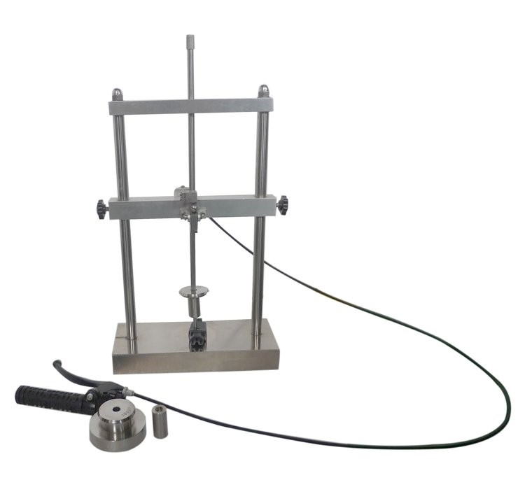 8 | 非實心插銷硬度測試裝置(GS-YT104) | 符合GB/T2099.1-2021標準第14.2章節及圖14規格要求、IEC60884-1-2013圖14、VDE0620等標準要求 | 一、 產品概述 符合GB/T2099.1-2021標準第14.2章節及圖14規格要求、IEC60884-1-2002圖14、VDE0620等標準要求,用于檢驗非實心插銷的機械強度。 二、技術參數: 1、鋼棒:Φ4.8mm; 2、負荷重量:100N; 3、手動旋轉手輪使插銷承重受壓. 三、 試驗方法 用負載100N的Φ4.8mm鋼棒垂直于插銷軸線壓在非實心插銷上1min,受壓點變形不得大于0.15mm,插銷其它尺寸變化不大于0.6mm,以此判斷非實心插銷是否有足夠的硬度。 |